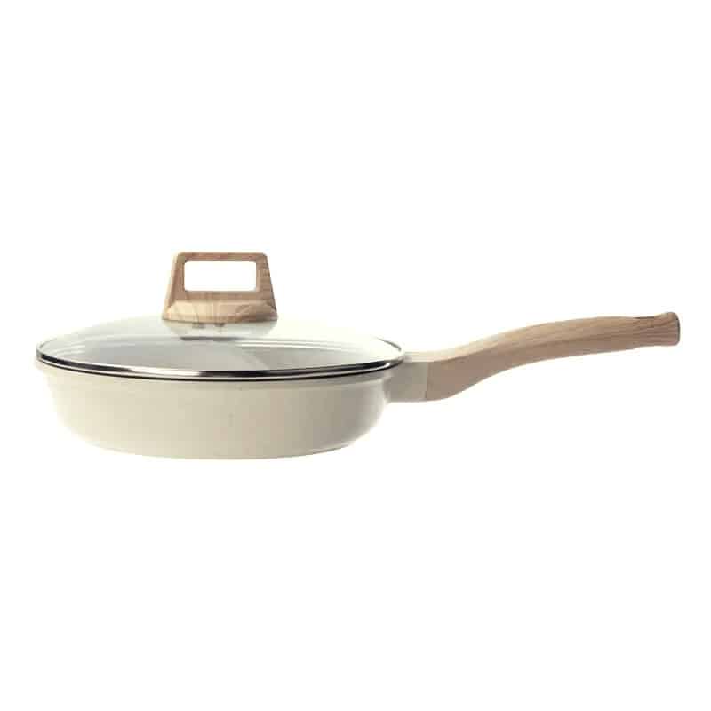 Gefertigt aus hochwertigem Aluminium, sorgen die Pfannen für eine gleichmäßige Wärmeverteilung. Die langlebige Antihaftbeschichtung verhindert Anhaften und erleichtert die Reinigung. Die stilvollen Griffe in Holzoptik bieten eine sichere und angenehme Handhabung, während die gehärteten Glasdeckel dir ermöglichen, den Garprozess jederzeit im Blick zu behalten – ohne Hitzeverlust.