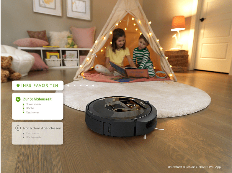 Mit Smart Mapping kannst du Räume benennen, individuelle Zeitpläne erstellen und gezielt einzelne Zonen reinigen. Der i7+ lernt mit der Zeit deine Gewohnheiten und passt seine Reinigungsroutinen entsprechend an.